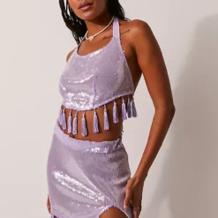 FP x EastNWestLabel Sequin Tassel Cami Lilac