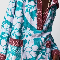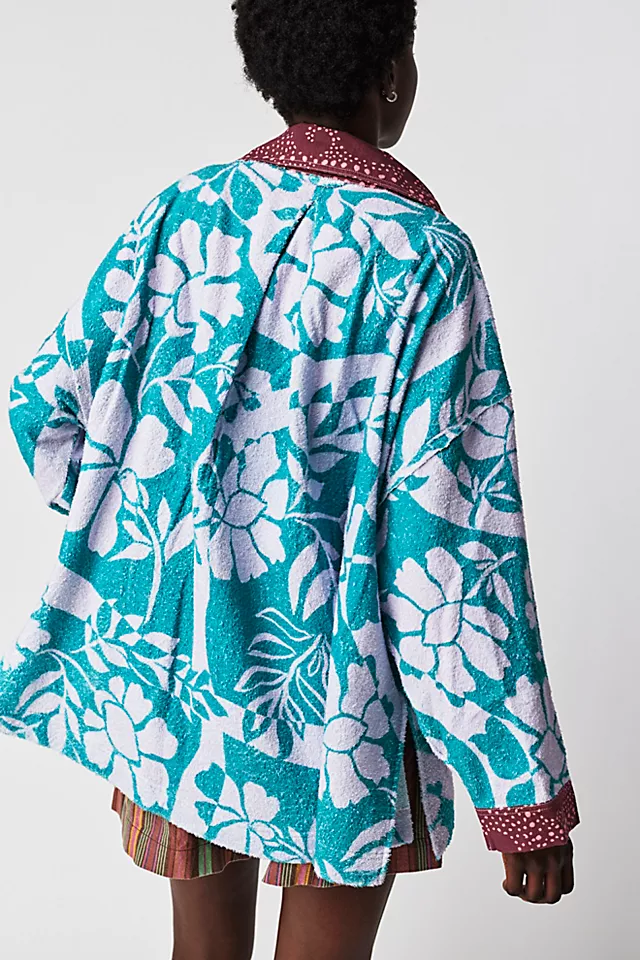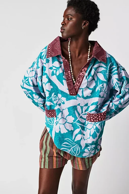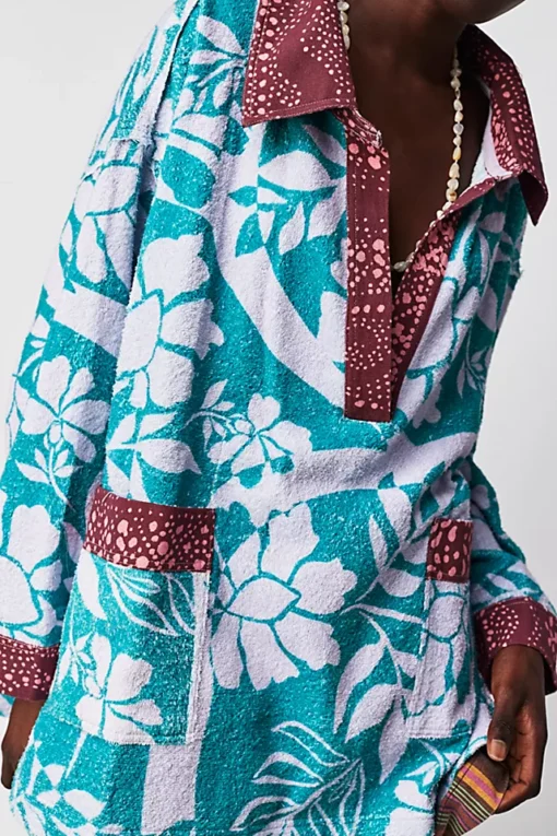 Printed to perfection in a slouchy. relaxed fit. this timeless. tunic-inspired top is featured in a soft. terry cloth fabrication with classic collar and contrast trims for added dimension.