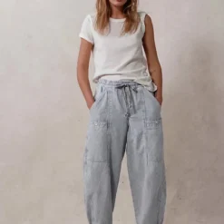 Fit: Low-slung. barrel silhouette