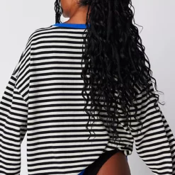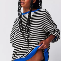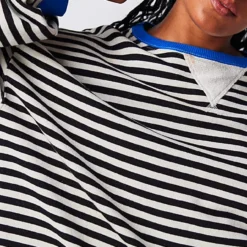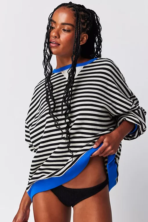 So cool and classic. this timeless crewneck is featured in an oversized. slouchy silhouette and staple striped print with contrasting hems for added dimension.