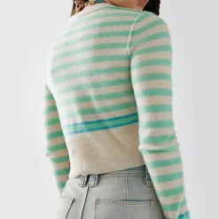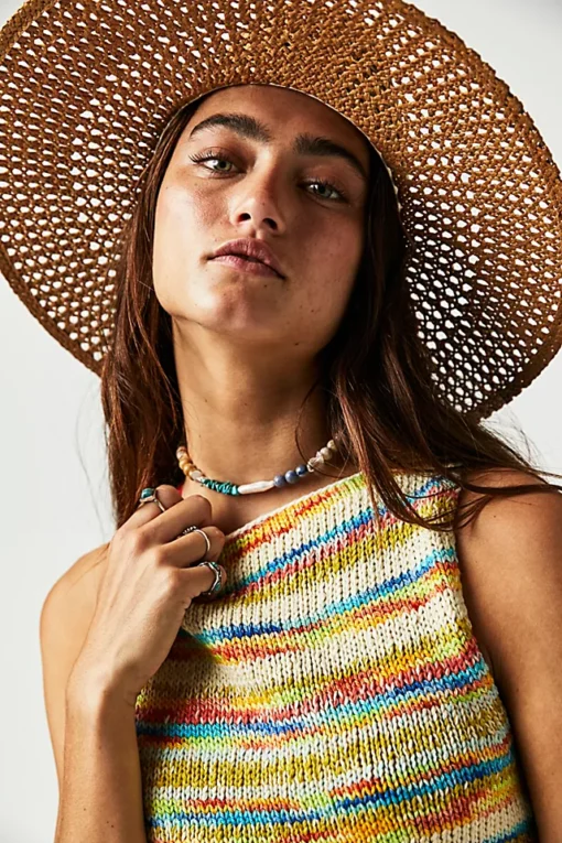 So fun and funky with a flirty touch. this stunning tank is featured in a striped knit design with super dropped armholes and contrasting. crossed. bandana-inspired back straps designed to add a special touch to any style.