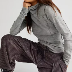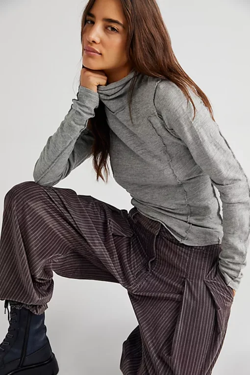 So essential with major attention to detail. this lightweight long sleeve is featured in an airy cotton material with seamed details and a laid back cowl neck.