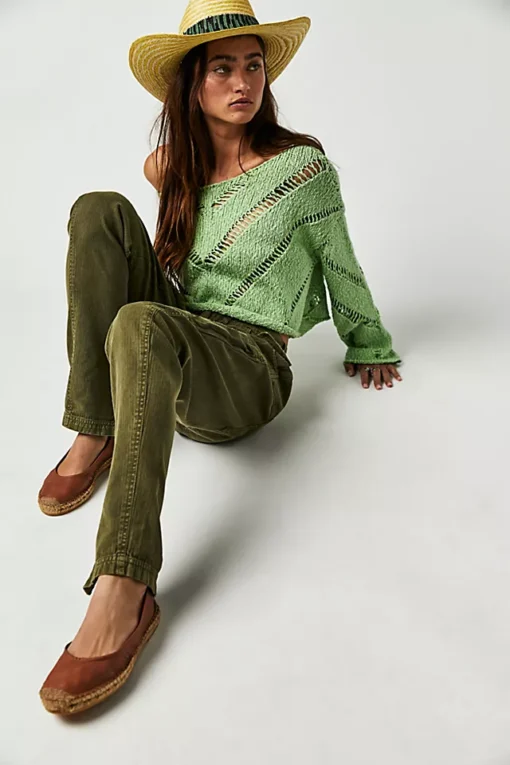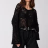 Features: V-neckline. dropped shoulders. open-knit style. slightly cropped fit