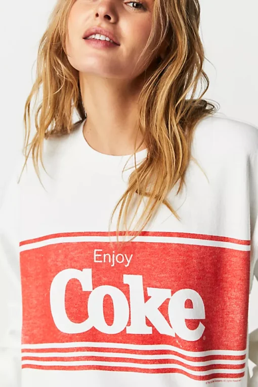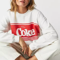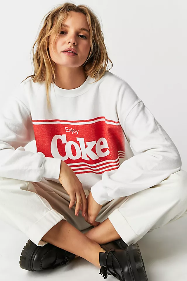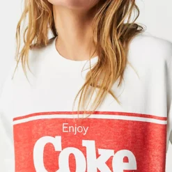 Just as effortless as it is essential. this timeless crewneck is featured in a staple. slouchy fit with worn Coke detailing at front for a true lived-in look.