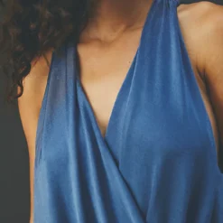 So sultry and versatile. this gorgeous staple features a billowy surplice-wrap bodice with a plunging v-neckline and femme pleating throughout for added shape.
