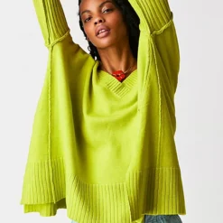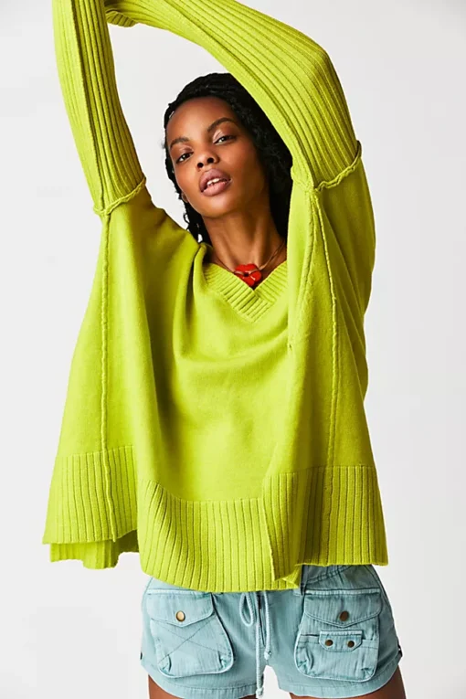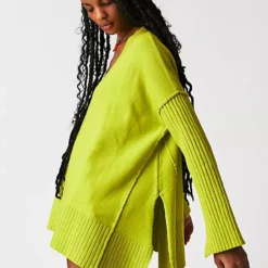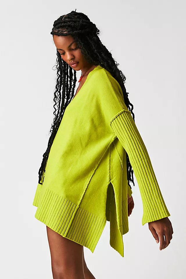 Totally timeless in a staple V-neck silhouette. this forever classic tunic top features a V-neckline with ribbed piercing. side slits at bottom. and raw seaming for a true lived-in look.