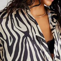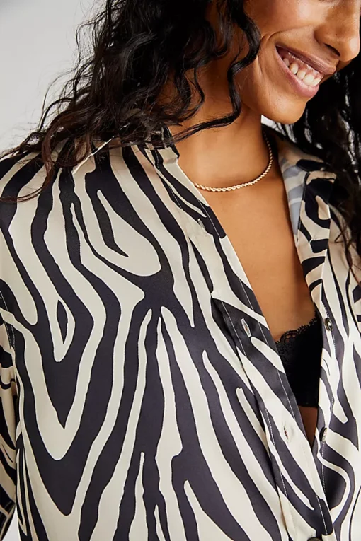 Be bold in this beautiful top featured in an oversized. button-front silhouette and stunning animal print fabrication for a cool and classic touch for years to come.