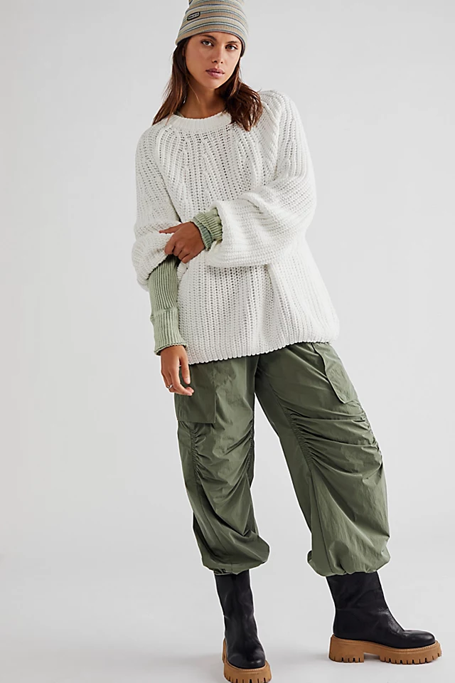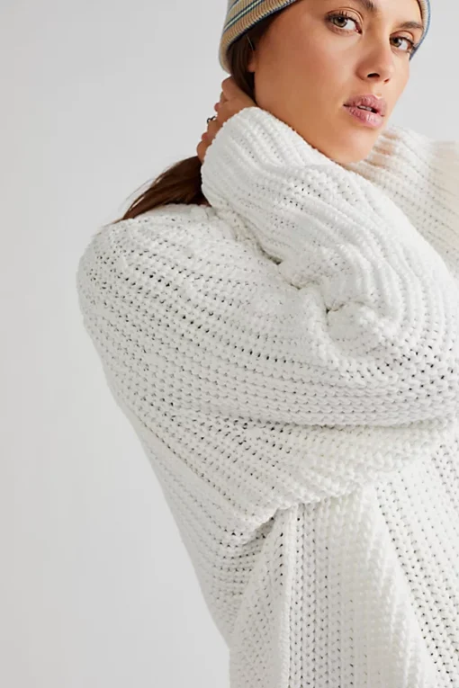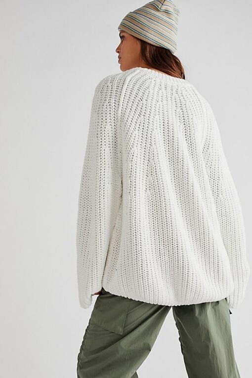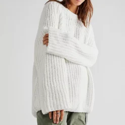 Features: Scoop neckline. classic knit design. oversized relaxed fit. slightly wide sleeves