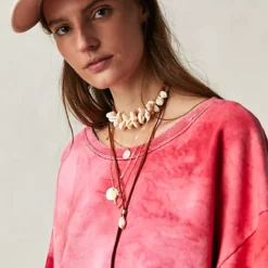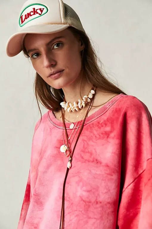 Totally timeless in a vintage-inspired design. this effortless tunic is featured in an oversized. slouchy fit and subtle tie dye print with dropped shoulders for shape and raw hems for a true lived-in look.