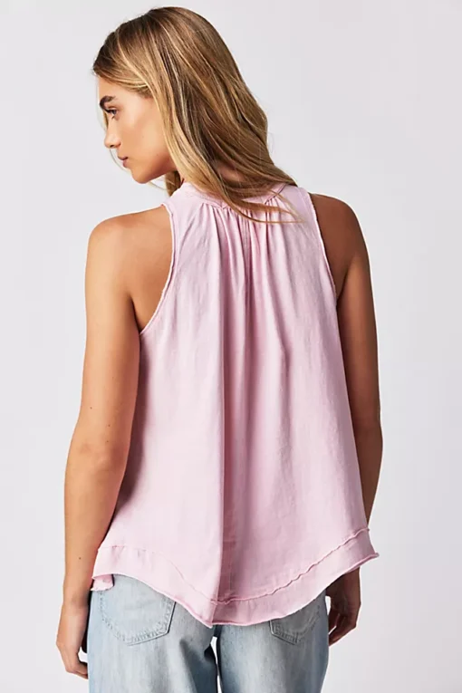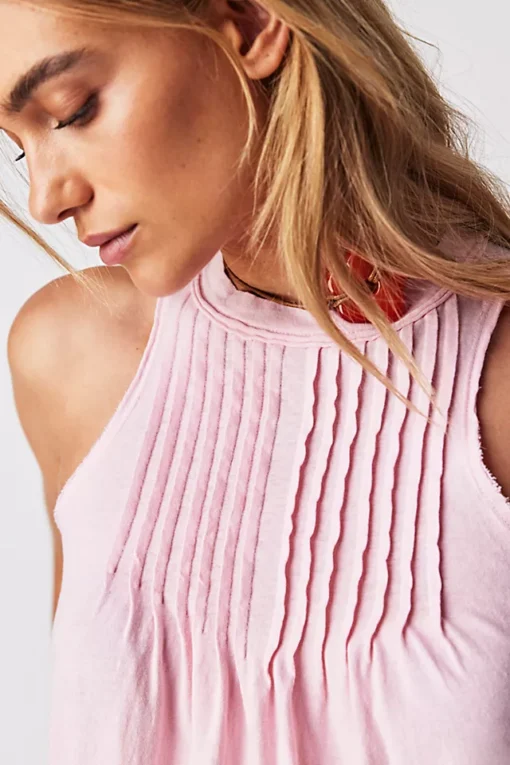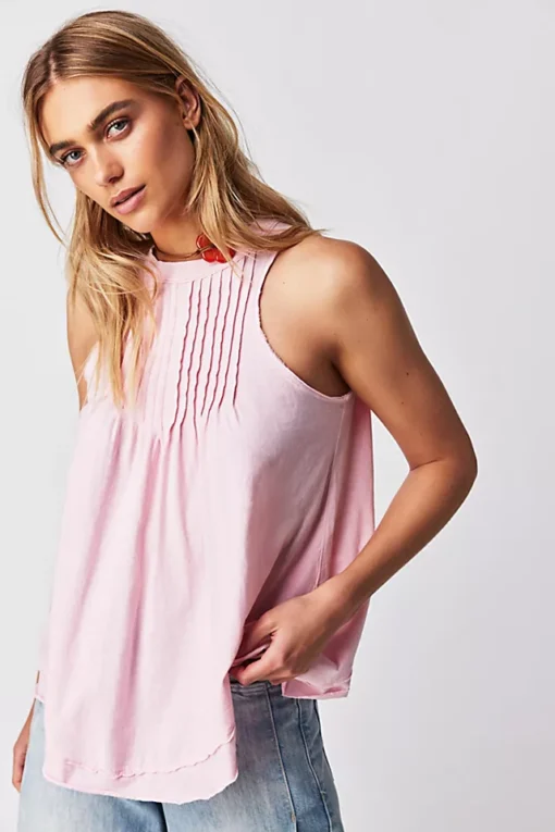 Just as effortless as it is essential. this timeless tank is featured in a drapey. flowy fit with defined pleating at bust. dropped armholes. and subtle distressing at hems for a true lived-in look.